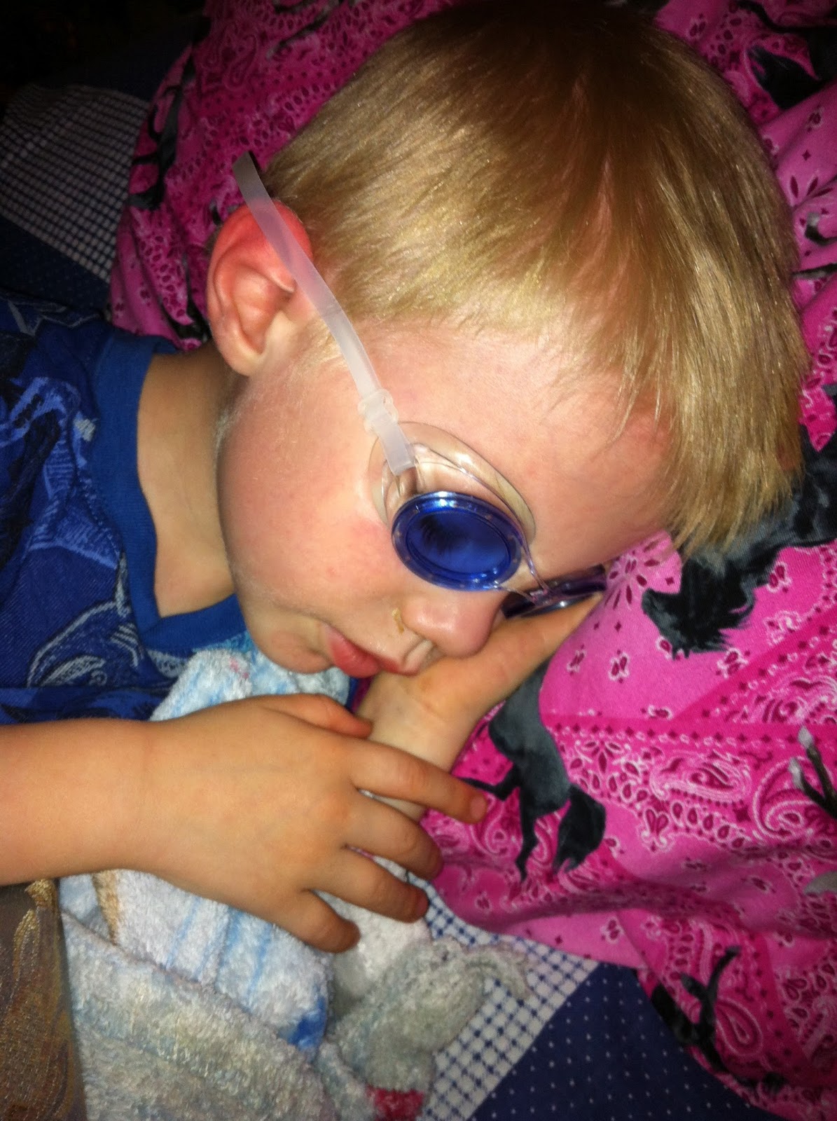 Mimi gave them some googles. Gray loved his so much he went so sleep with them.